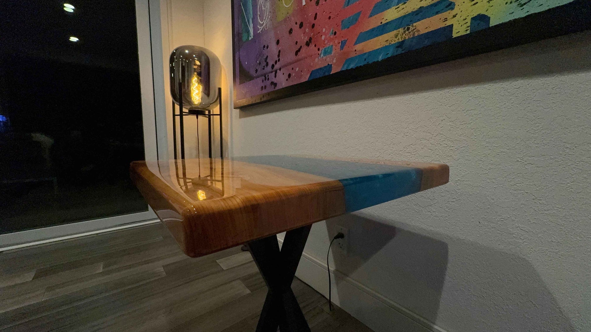Custom Wood and Epoxy End Table - Cedar & Blue Epoxy 23" x 23"