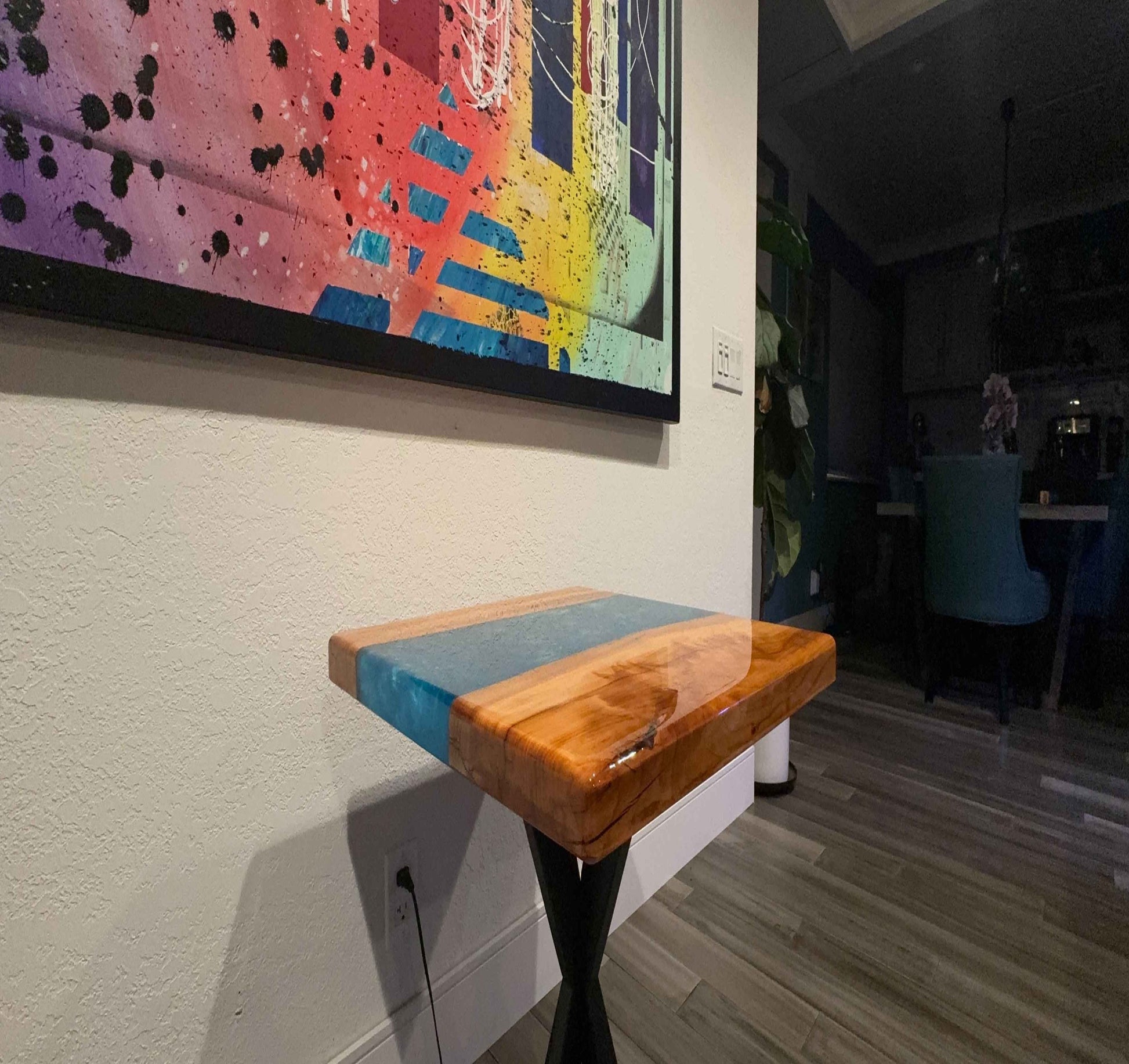 Unveil the allure of nature with our latest creation – the Live Edge deodar Cedar End Table! Crafted from light deodar Cedar, the live edge wood and epoxy design brings a touch of authenticity. The mesmerizing blue epoxy river gracefully flows, captivating attention. Supported by a modern black metal powder-coated base, this side table blends nature and contemporary design seamlessly. Elevate your space with Resin Root Designs' artistry.